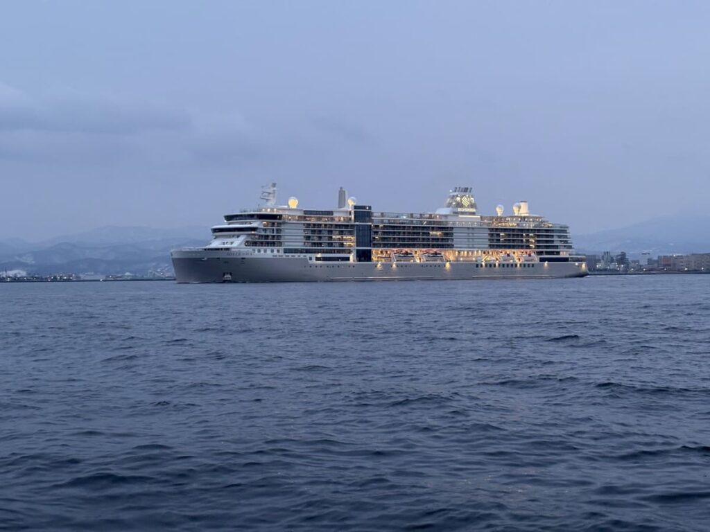 夕方18:00ごろ、まばゆい光を放つ巨大な「豪華客船」が優雅に通り過ぎていきました……。 「あっちの船はディナータイムで盛り上がってるんだろうなぁ…」なんてちょっぴり孤独を感じつつも、気を取り直して釣り開始!