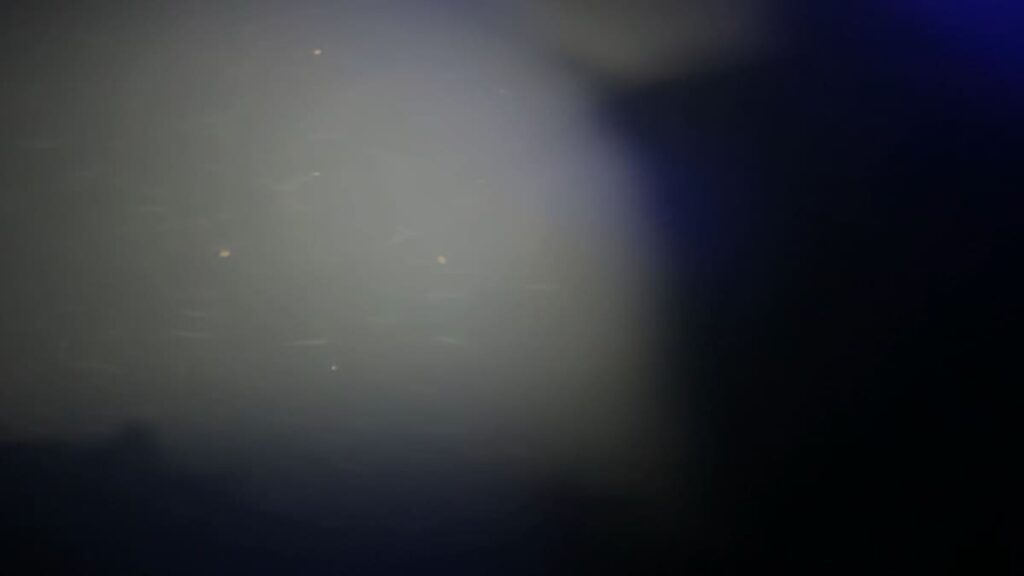 船のライトで海面を照らすと、肉眼でもウヨウヨと泳ぐ小魚たちの姿が確認できました!「エサがいっぱいいる=それを食べに大きな魚も集まってくる」という大チャンス状態です🔥