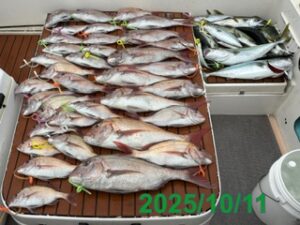 2名様お疲れさまでした。午後から風が強くなる予報だったので、早上がりでも大丈夫の方たちで出航。最後までポツポツと釣れてくれました😄 大潮 満潮15:19 干潮9:46 日出7:01 出航7:00(青森)