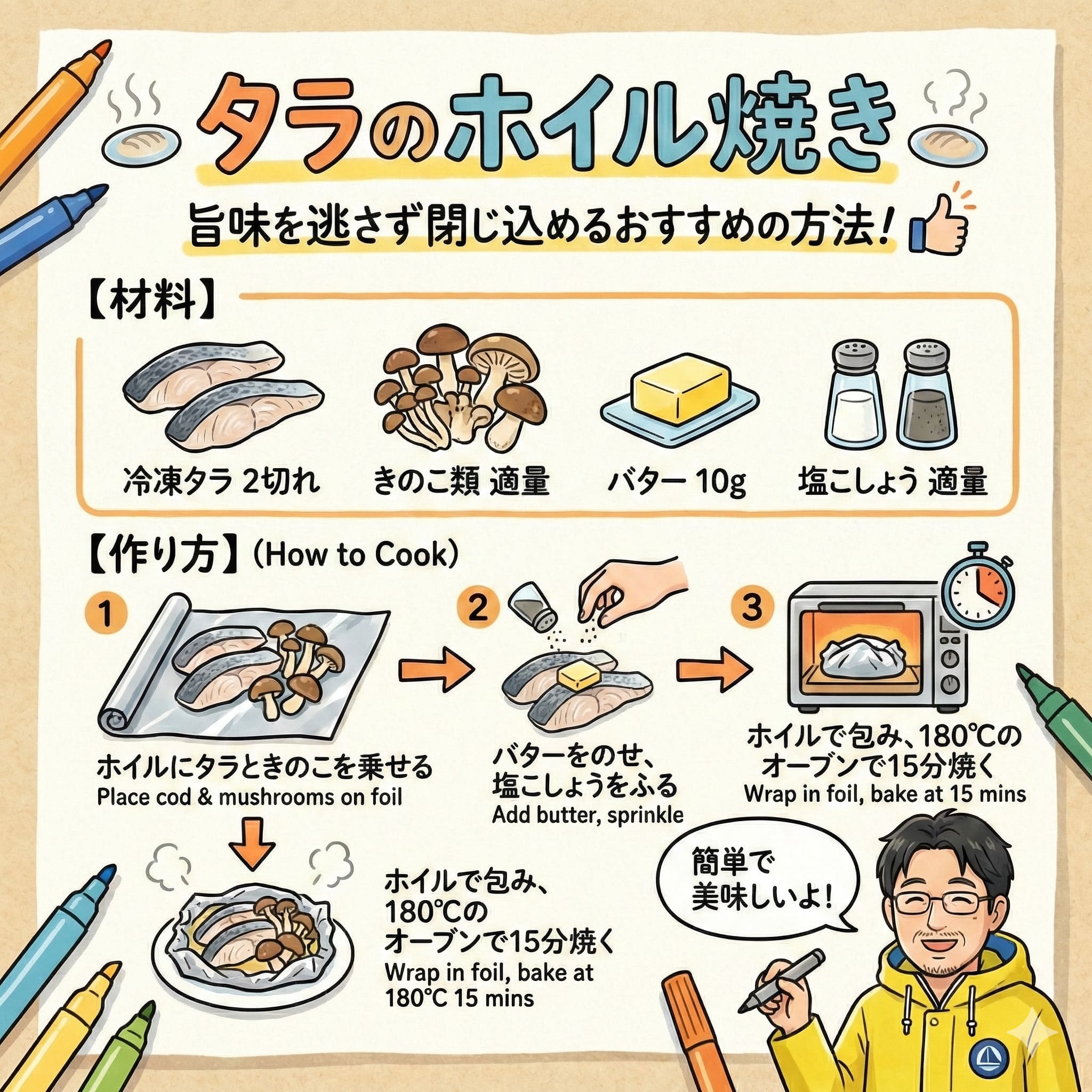 ホイル焼きは、タラの旨味を逃さず閉じ込めるおすすめの方法です。